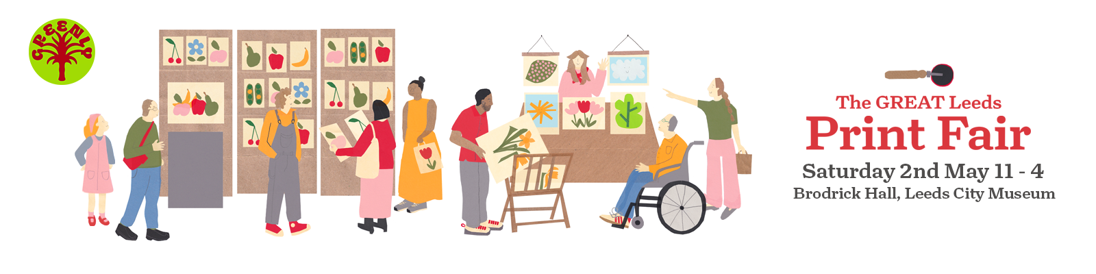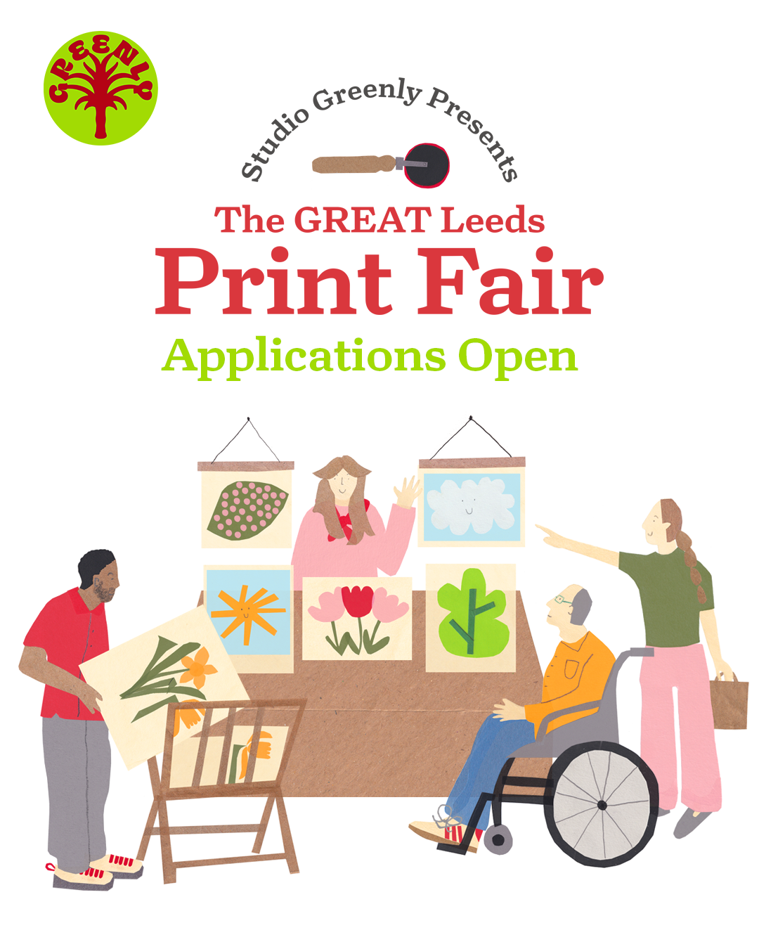 A poster for Studio Greenly's 'The GREAT Leeds Print Fair' created using collage and digitally put together using Photoshop. The brief for this project was to create a poster that was minimal and colourful, celebrating printmakers and the spring season. The poster was reformatted for social media assets and a Google Forms banner.